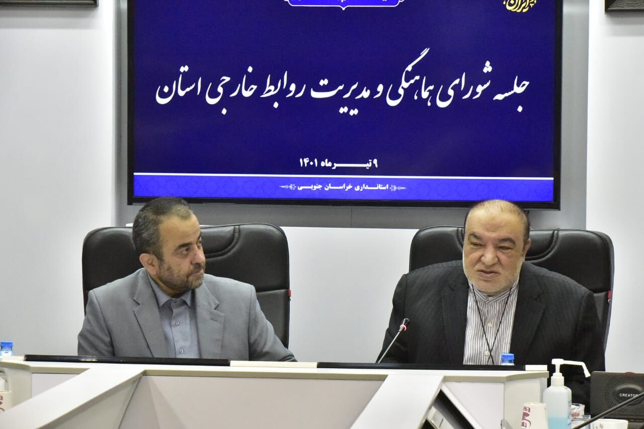 معاون وزیر امور خارجه با تاکید بر اینکه نباید تمرکز خراسان جنوبی در زمینه سرمایه‌گذاری و مسائل تجاری فقط بر کشور افغانستان باشد گفت: خراسان جنوبی همانند خراسان رضوی در زمینه صادرات تمرکز خود را به کشورهای دیگر نیز لحاظ کند و ما نیز آمادگی کمک را داریم که استان شما وارد بازار کشورهای مختلف شود.